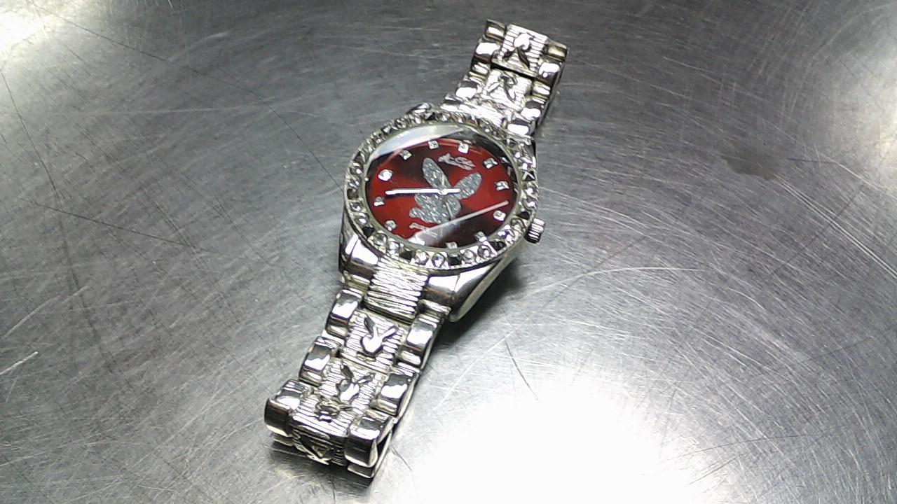MONTRE ARGENT/STYLE:BARRE (SANS CHIFFRES)/FOND:ROUGE/FORME: RONDE/BRACELET: S. STEEL/COUL.: ARGENT/MÉCANISME: QUARTZ (BATTERIE)